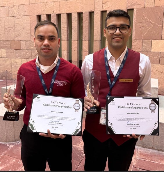 Last month our Office Assistants, Binod and Yugesh, were awarded certificates of appreciation from QF in recognition of their efforts. Please feel free to nominate any of the GU-Q Service Providers through the QF recognition program. You can read more about it here.