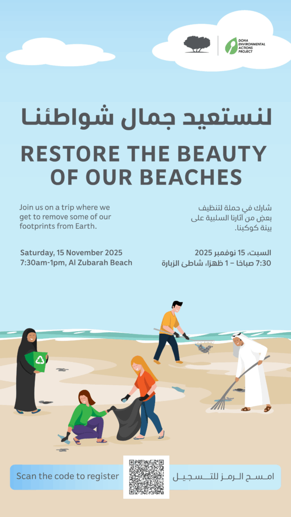 We’re pleased to invite you to our annual Beach Cleanup event at Al Zubarah Beach on Saturday, 15 November 2025, organized by QF HSE Department in collaboration with DEAP as part of our ongoing efforts to combat plastic pollution.